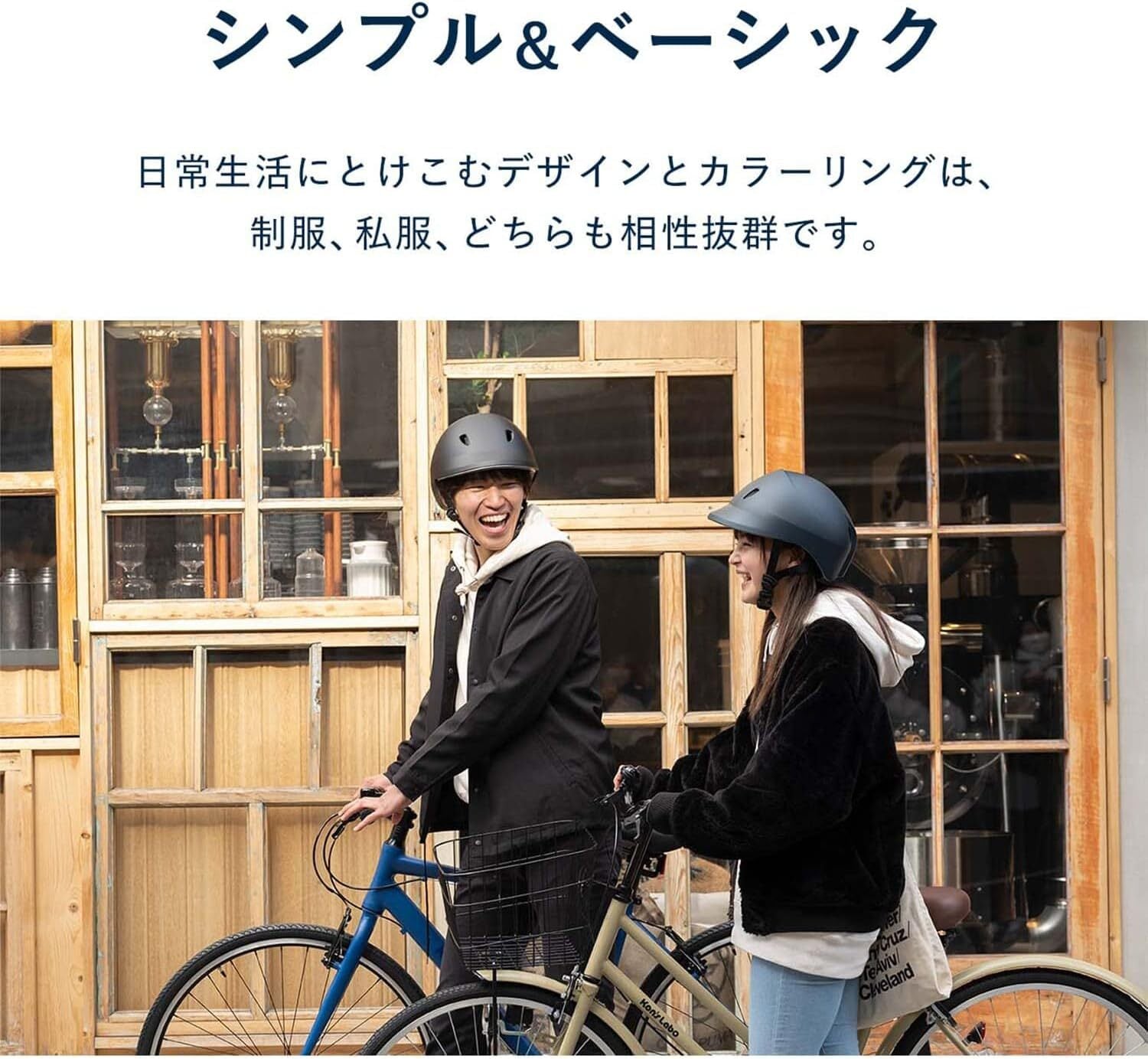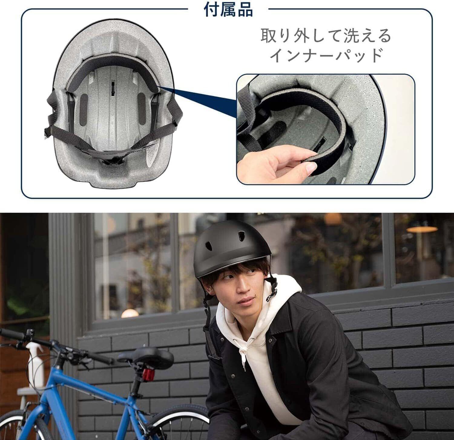 SG規格合格品である、中高生向け自転車用ヘルメットS-Mサイズです。安心の日本製で、通学時や休みの日などあらゆるシーンに溶け込むシンプルでベーシックなデザイン。