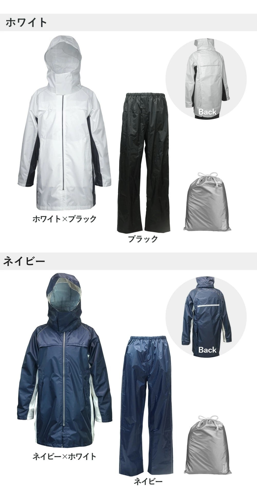 ・レインウエア上下は、突然の雨にも安心して対応できるスタイリッシュなアイテムです。